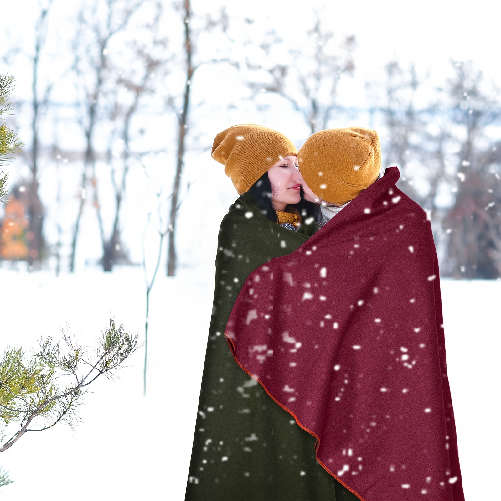2pcs Military Wool Blankets 64" x 88" - Thick Thermal Camping & Survival Blankets, 3.3 Lbs Each, Machine Washable, Wine Red & Army Green, Perfect for Outdoor Adventures, Hiking, and Emergency Kits, Outdoor Survival Gear | Mil