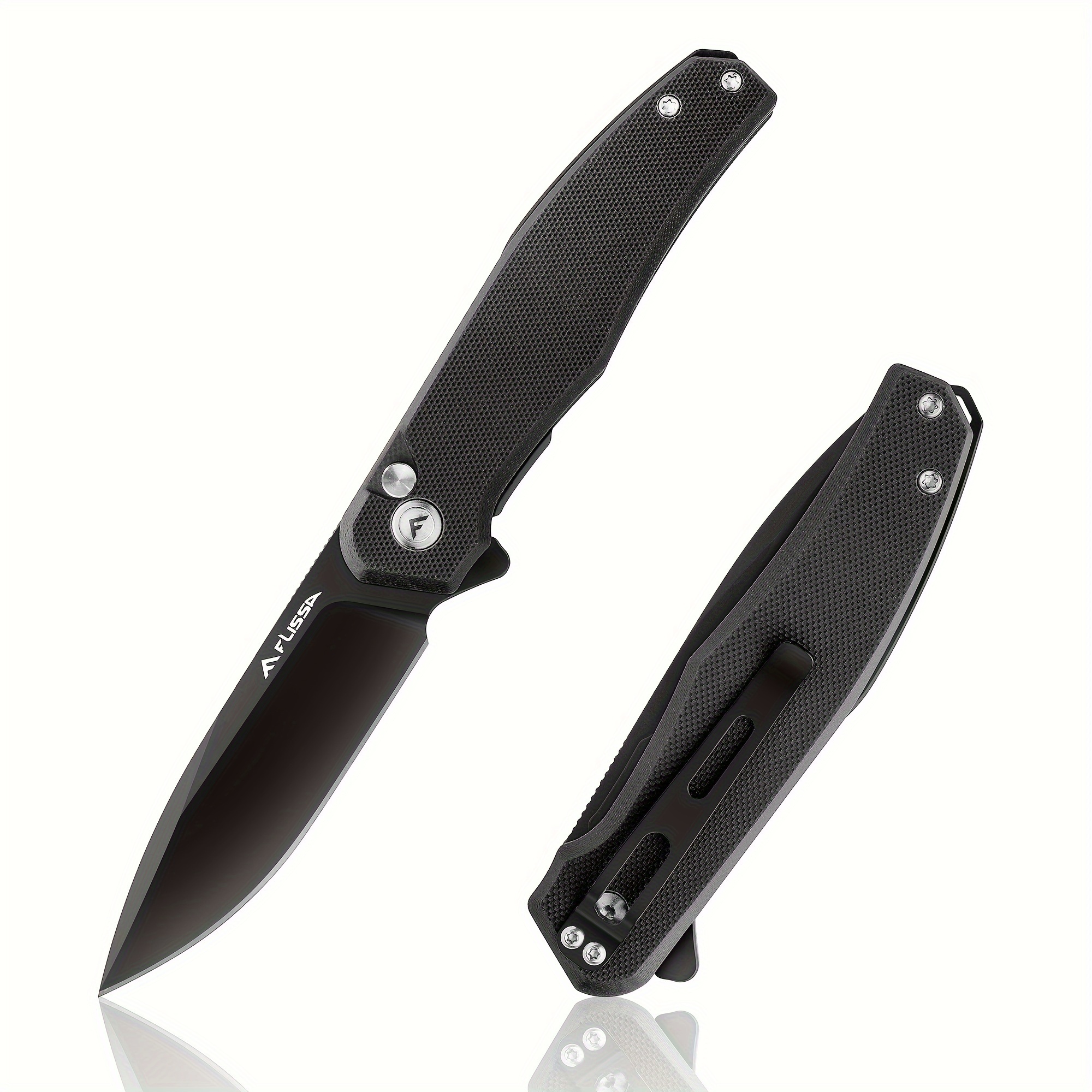 FLISSA Folding Pocket Knife, 4.5" G10 Handle EDC Knife With D2 Steel Blade, Button Lock And Pocket Clip, Tactical Knives For Men Women, Uesd For Outdoor, Survival, Hunting And Camping (Black)