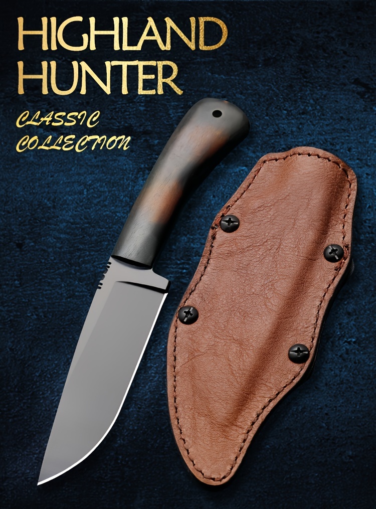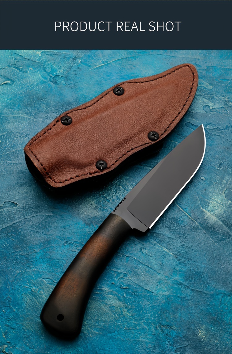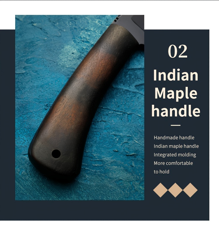 Heavy-Duty Survival Knife with Fixed Blade - Full-Tang Construction, Sharp Edge for Camping, Hunting, Tactical Use - Maple Handle - Sandwich Silent K Sheath with Non-Slip Grip - Outdoor Survival, Rescue, Everyday Carry - Idea