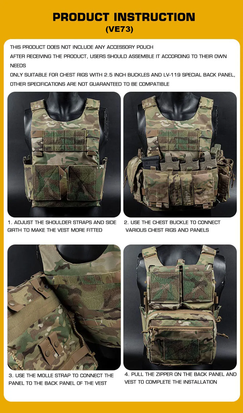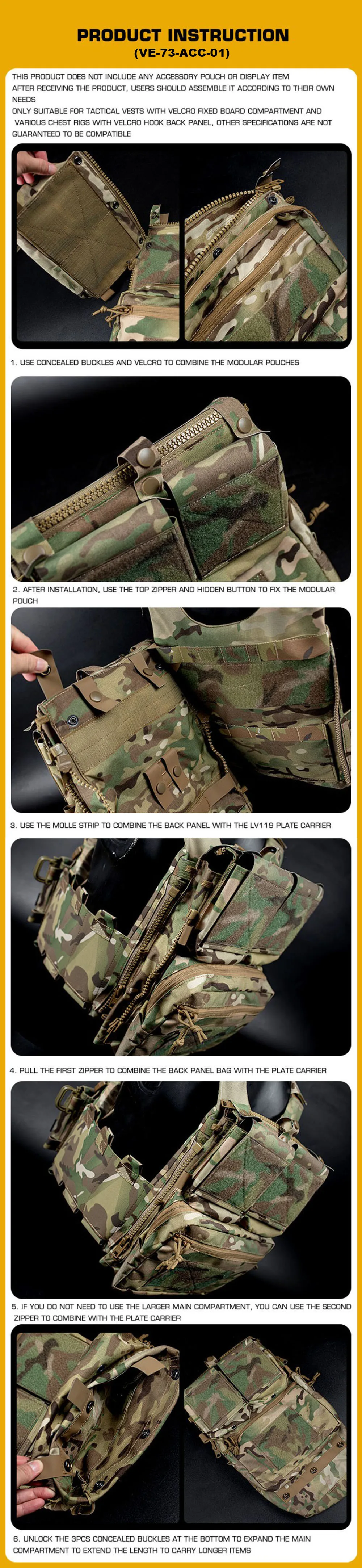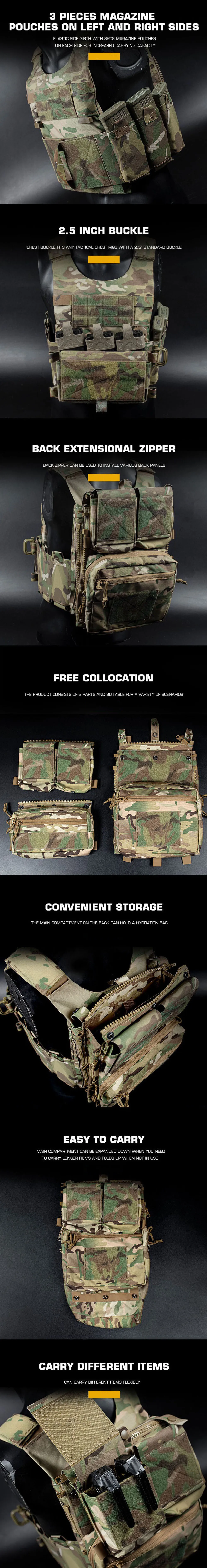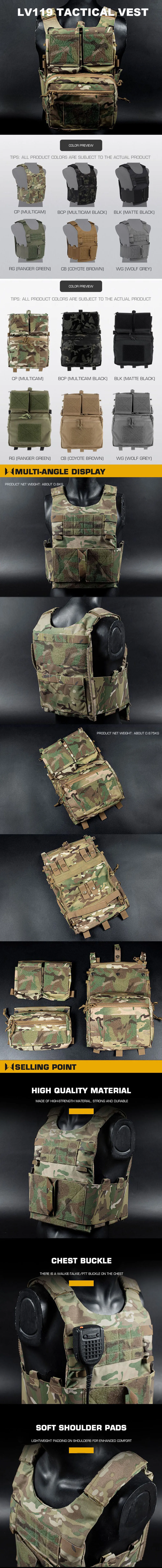 LV119 Tactical Vest Spiritus System Plate Carrier Vest Zip-on Expansion Assault Back Panel Storage Bag Airsoft Hunting Vest Gear