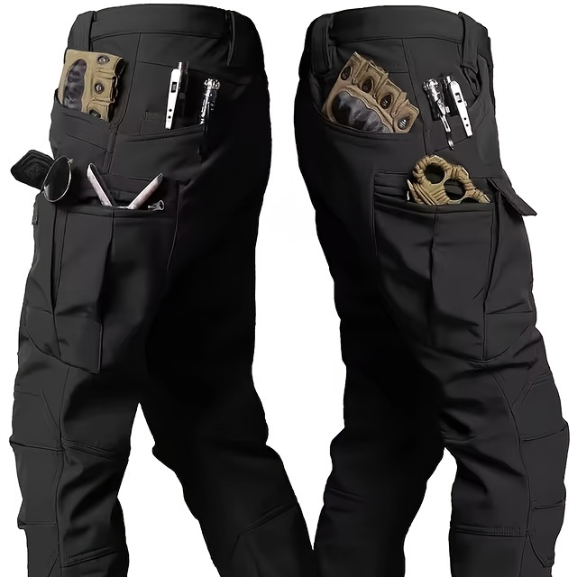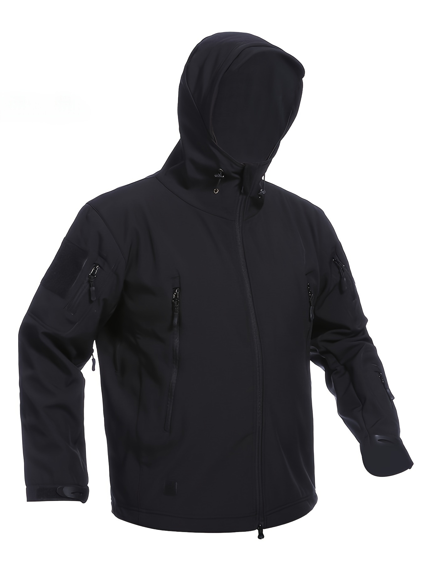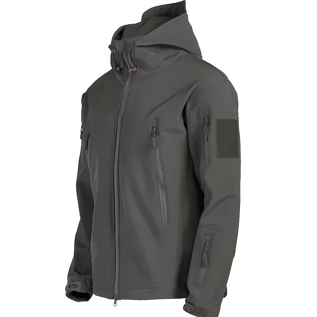 Men'S Tactical 2pcs Set, Polyester Shark Skin Cycling Jacket with Hood, Waterproof Workwear, Casual Style, Solid Color, Regular Fit, for Hiking & Outdoor Activities