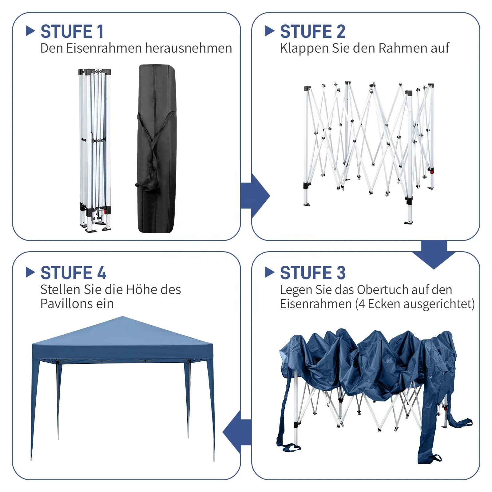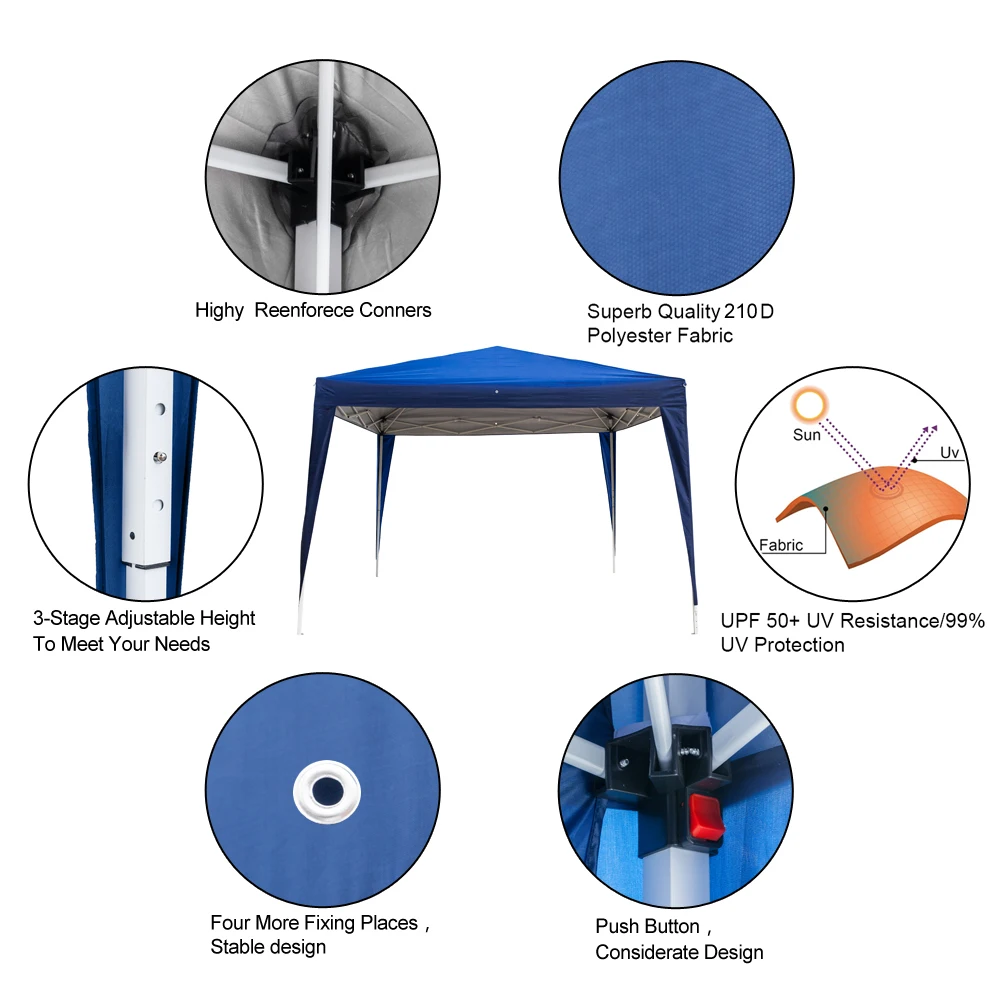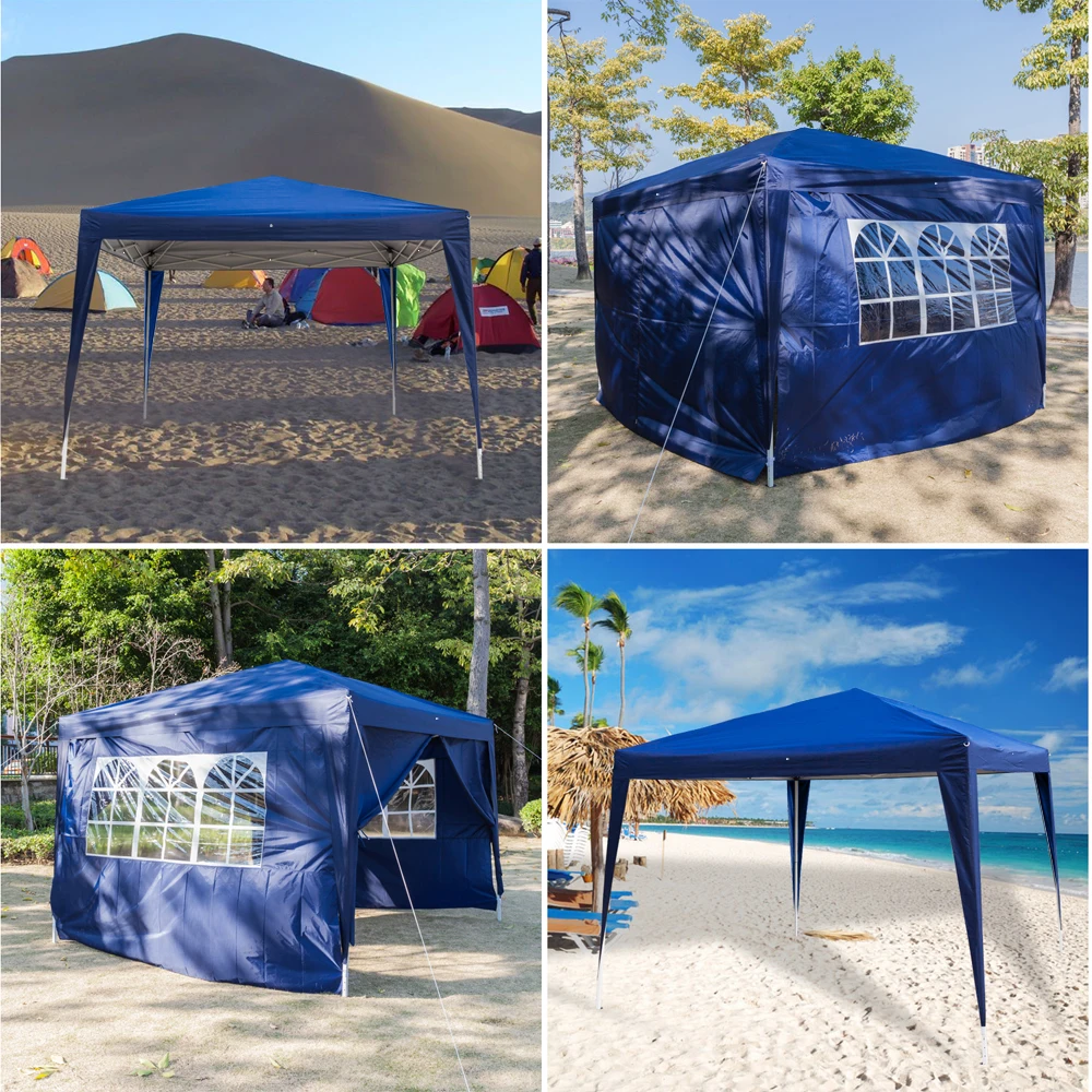 Practical Blue 10' X 10' Right-Angle Folding Tent with Two Doors & Two Windows Waterproof Canopy & Gazebo & Pergola