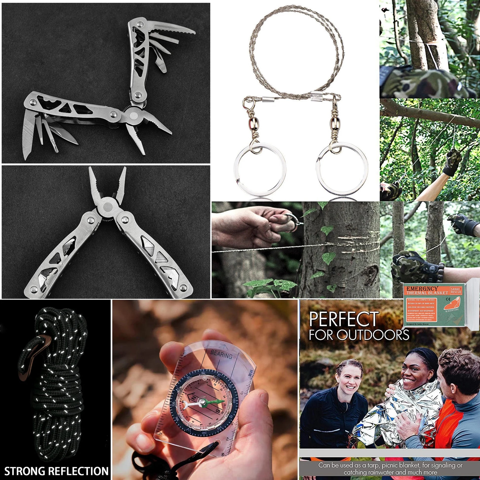 [Must Have Survival Gear]: All of the items have been tested to ensure they can withstand even the toughest emergencies and conditions, such as outdoor adventure, hunting, camping, hiking, travel, natural disasters such as earthquake, tornado, flood. If you have any questions, please don’t hesitate to reach out to us so we can get you taken care of in 24hours.