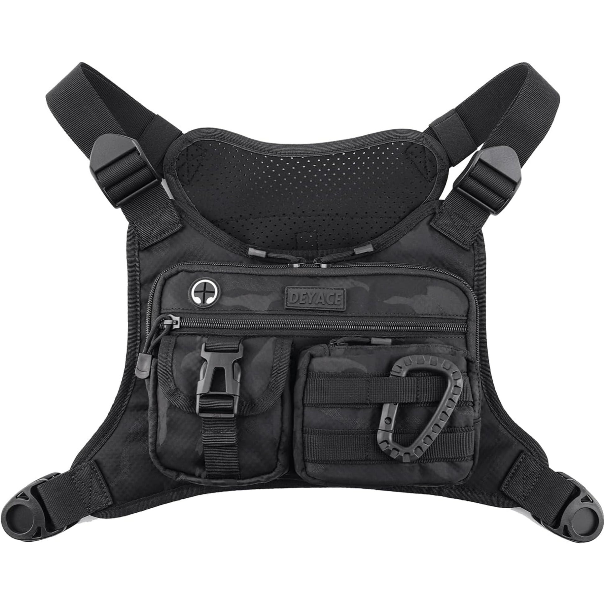 [Tactical Chest Bag] Durable, EDC Men's Tactical Chest Bag with Built-In Phone Holder | Adjustable Straps, Multiple Compartments, Black, Adventure Gear | Sleek Design | Secure Compartments