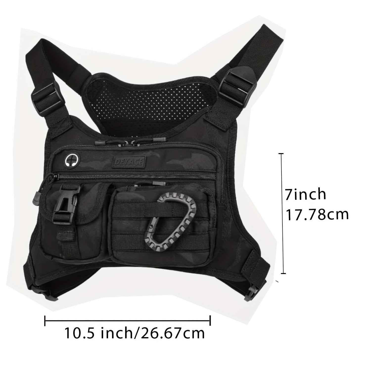 Portable, Comfortable, and More Convenient: Our chest bag is a good choice as a sports utility pack. Measure 10.2 inches x 6.3 inches x 2.5 inches. With a molle webbing design and one carabiner. Keep your essentials like your phone, earbuds, wallet, and more within reach whether you're strolling in the park or working out at the gym.