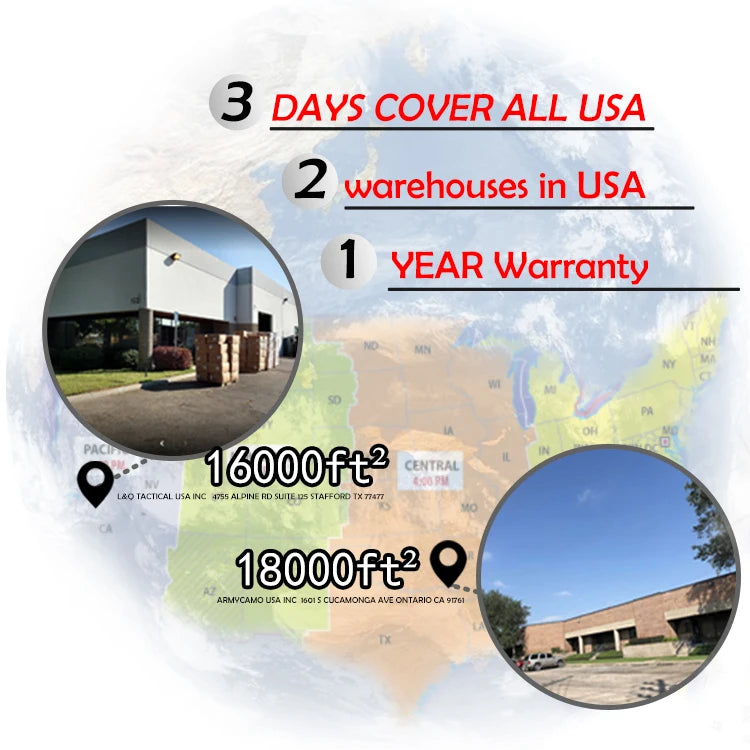 1.Local shipping &Customer service: Two CO- warehouse located in Ontario California and Stafford TX.2.Fast delivery: Order ship